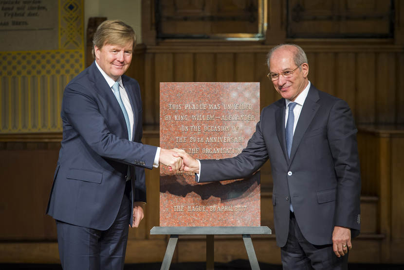 During the ceremony, the King and the OPCW's Director-General, Ambassador Ahmet Üzümcü will unveil a plaque acknowledging the OPCW's anniversary. The commemorative ceremony will feature statements by Her Royal Highness Crown Princess Victoria of Sweden, who is a United Nations Sustainable Development Goals Advocate, Minister of Foreign Affairs Bert Koenders, Mayor Pauline Krikke of The Hague and others.