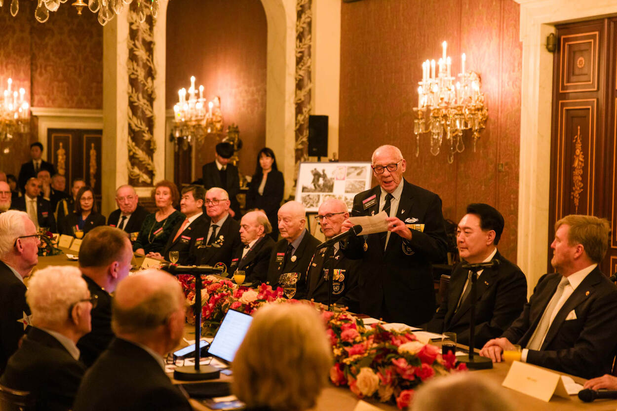 Back at the Royal Palace in Amsterdam, the King and President Yoon will meet with Dutch veterans of the Korean War. During the meeting they will reflect on the history of the bilateral relations between the Netherlands and the Republic of Korea.