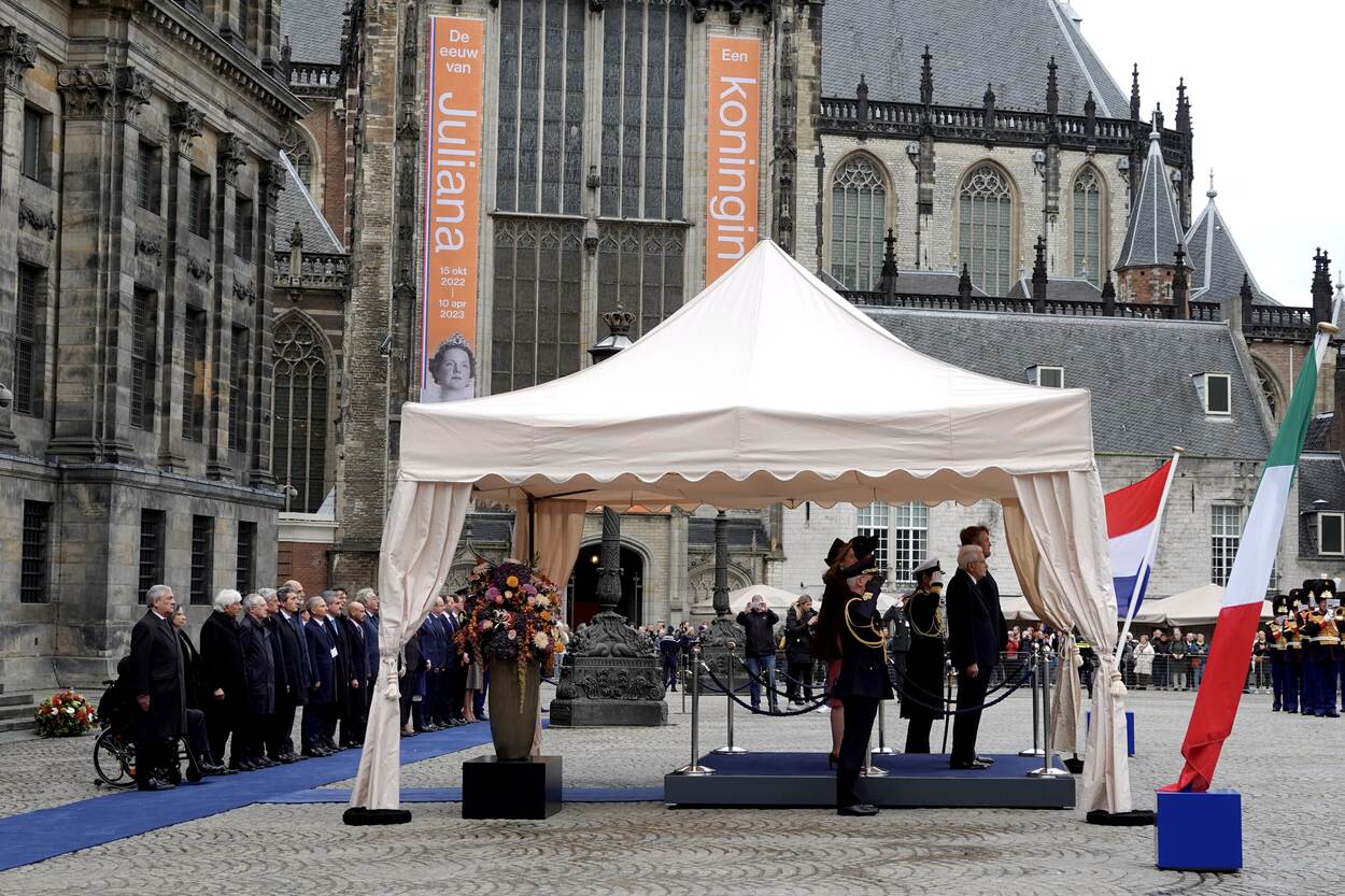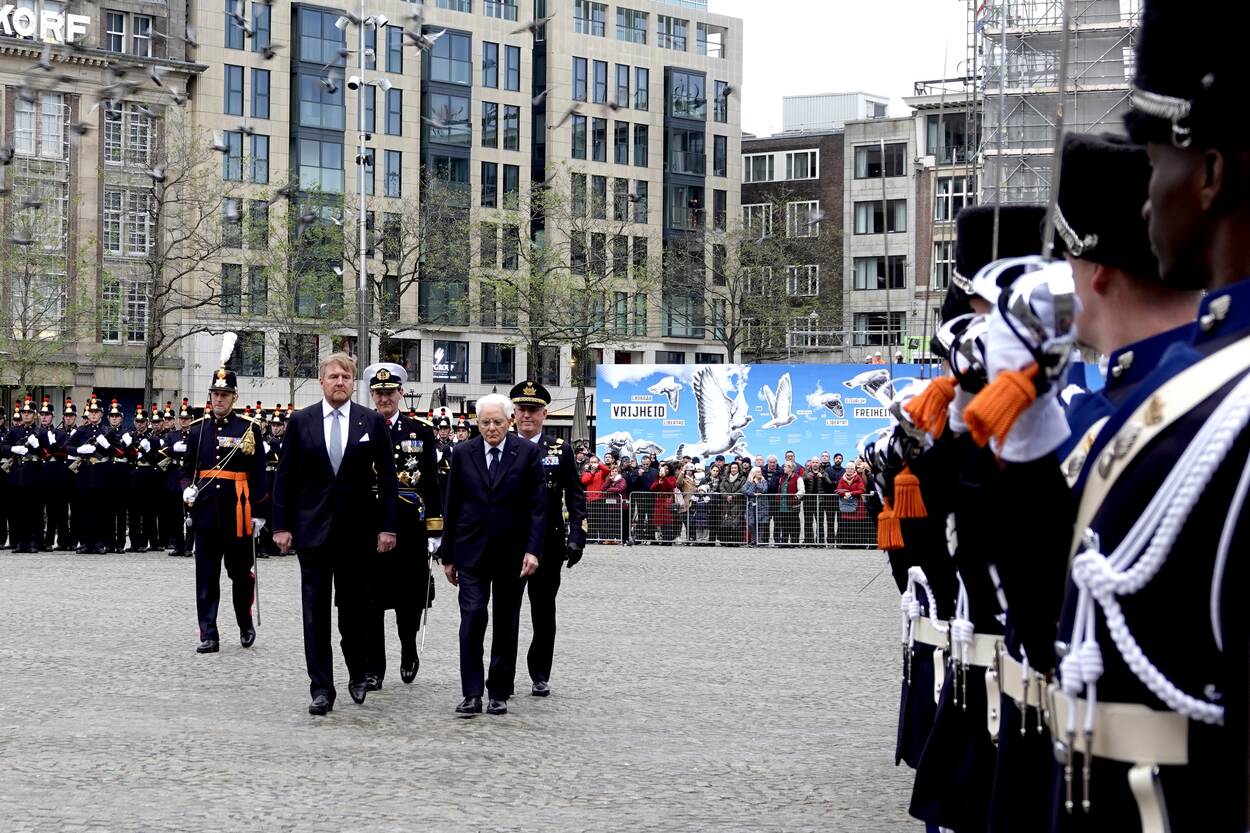 King Willem-Alexander and Queen Máxima will officially welcome the Italian President and Ms Mattarella on Dam Square in Amsterdam. After the delegations have been introduced, an inspection of the guard of honour will take place.